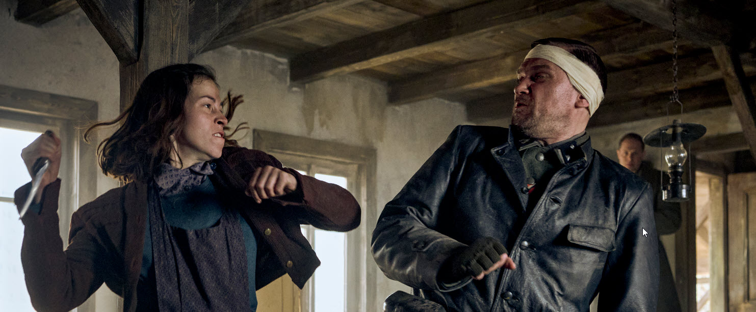 A former stuntman, Maaser isn’t always the most compelling lead dramatically but does make for a solid knuckle-crunching action star, and that’s what he’s called on most to do. The dramatic heft of the movie rests with Hacke as a woman who survived the war, saw further trauma, and isn’t about to let these Nazi infiltrators make off with any reward for their crimes. Balancing hard-edged action with sensitivity keeps her performance and others around her grounded most splendidly. Several supporting characters that fill out the town are either comically arch or mustache-twirlingly evil – and both approaches work for the mood.