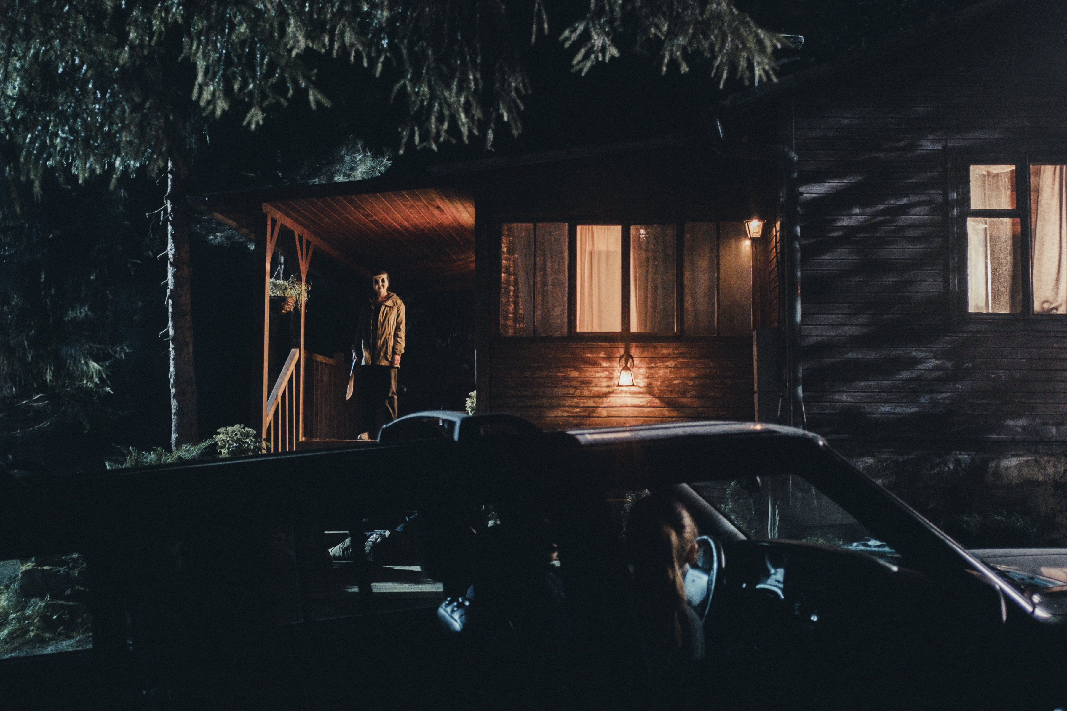 That means Maya and Ryan will be staying at Joe’s Murder Cabin…sorry, Joe’s Hunting Cabin, an Airbnb on the outskirts of town in the middle of nowhere. No sooner do they get settled in for the evening when they receive a familiar (to anyone who’s seen the first two films) knock at the door and a woman’s voice asking, “Is Tamara there?” calls to them. When they open the door, the woman is standing four feet in front of them but is 100% obscured from their vision because she’s unscrewed the light bulb on the porch (even though we can see the details of the barely lit trees twenty feet in the distance, figure that one out). Sorry lady, Tamara was wise and skipped this sequel.