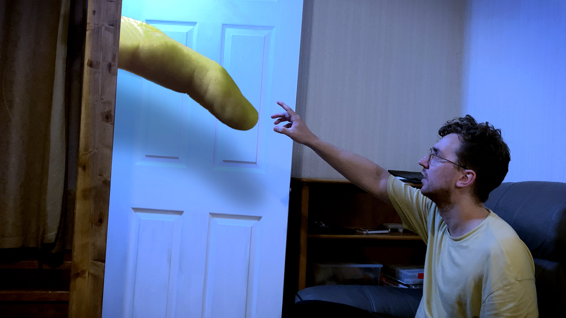 Hughes does wonders with his resources, proving that a limited budget should be no barrier to big ideas, delivering moments of genuine dread that go above and beyond. Each dimension Sam and Ash encounter brings a new layer of terror, from a giant panda that looks innocuous to a rogue pyramid that appears out of nowhere. Using practical effects to create a hokey but still chilling atmosphere, he embraces the rough edges, heightening the unease of the mystified characters in the process. Like those unnerving YouTube videos The Backrooms (this is a rabbit hole you may not want to go down), it wields inventive camerawork to create otherworldly scenes.