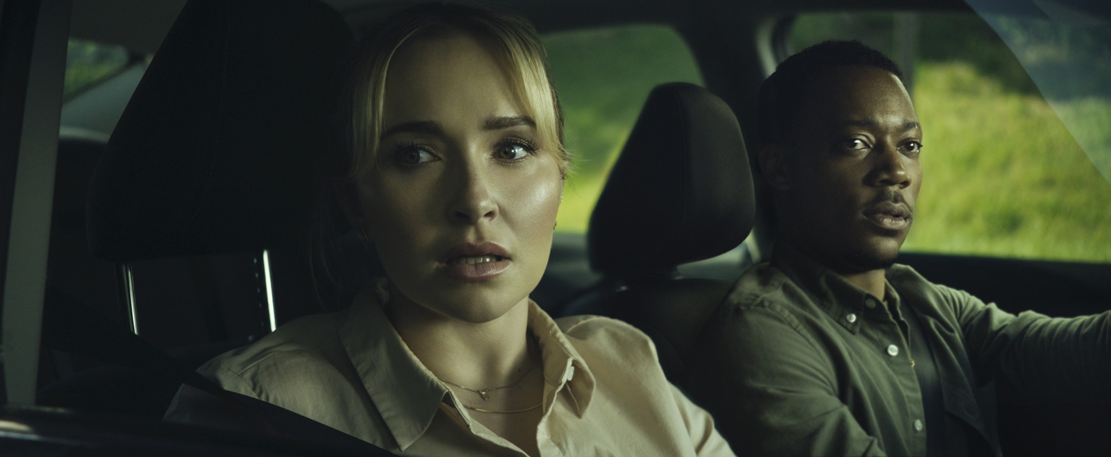 Around the same time, Jaq (Hayden Panettiere, Scream VI) has just missed her rideshare to a blind date downtown, but lucky for her, Shane (Tyler James Williams, The United States vs. Billie Holliday) works for the same service and is dropping off his last fare of the day at her location. With a bit of convincing, Jaq gets Shane to take her downtown, but they aren’t very far when they receive the Amber Alert and realize that they are trailing a car matching the kidnapper’s description. Following her gut, Jaq asks Shane to trail the car, beginning a deadly game of cat and mouse where the two will face the terrifying possibility that the person driving the car may also be watching their every move.